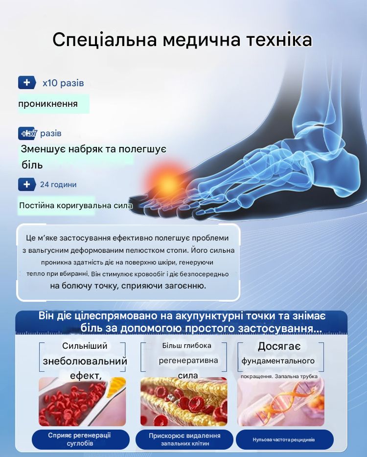 Порада: для кращого комфорту поєднуйте з м’яким взуттям та уникайте сильного тиску на проблемну ділянку. Перед першим використанням зробіть тест на чутливість шкіри.